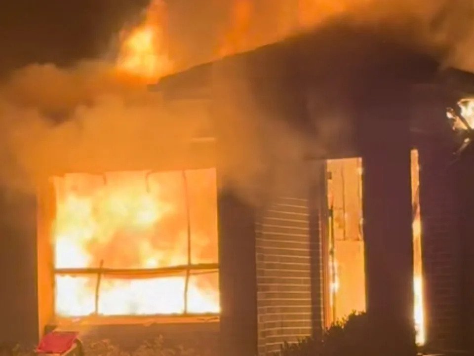 The fire, which broke out at a home on Corder Dr in Spring Farm, near Camden, was reported at approximately 12.25am on Saturday. Firefighters arrived to find the property well alight, with flames engulfing the building.